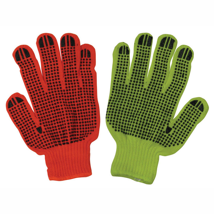 Knit Cotton Polyester Gloves in Orange or Green with Black PVC Dots Both sides Image