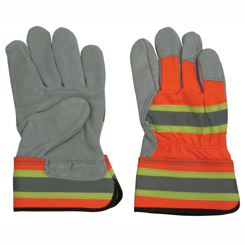 - High visibility fluorescent orange glove with 3M™ Scotchlite™ Reflective Material and premium split cowhide with rubberized safety cuff. Provides excellent visibility in low light conditions.