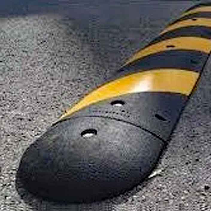 Easy Rider® Speed Bump reduces vehicle speeds to 2-5 mph (approximate), making parking lots or light traffic streets safer for pedestrians and motorists. Constructed from 100% recycled tires, Easy Rider® speed bumps are preformed to ensure a smooth, safe ride. The Easy Rider’s flexible design conforms to the contour of virtually any road surface. End caps can also be purchased to protect the speed bump ends as well as vehicles. In-molded reflective tape and cat’s eye reflectors enhance the speed bumps visibility at night warning drivers and pedestrians well in advance.