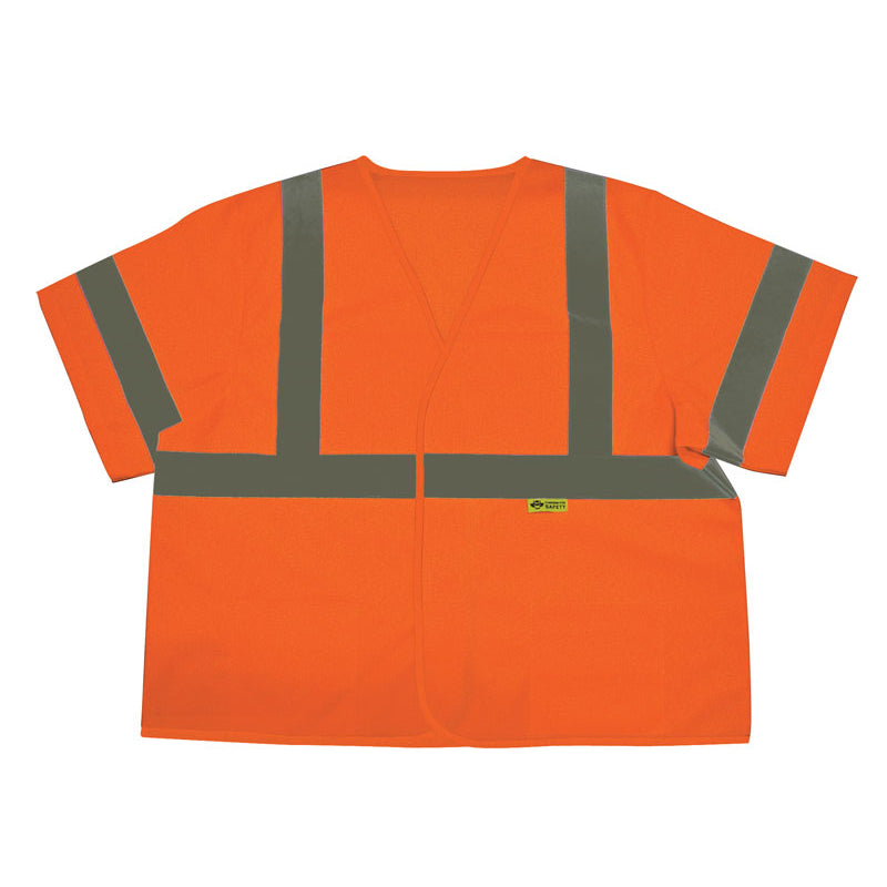 Our Safety Vests With 2 in. (W) Silver Stripes - Class 3 have hook and loop front closure and three pockets. To vertical and one horizontal 2 in. (W) reflective silver stripes front and back. Two inch wide reflective silver on the sleeves. Available in mesh or solid. Colors: Lime Green or Orange. Sizes: SM/MD, L/XL,2XL/3XL,4XL/XL. Minimum order one case of 36 vests