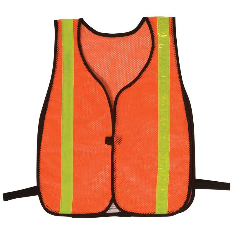 Safvest Nylon Vinyl Mesh Vests are available in Lime or Orange with 1 3/8 in. (W) fluorescent lime yellow reflective stripes made from 3M™ Scotchlite™ reflective material. Available in Lime or Orange. One size fits all.